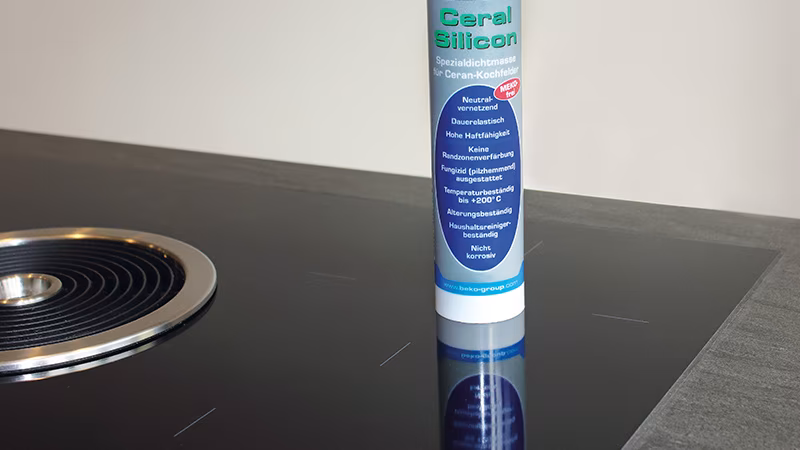 voor de installatie van keramische kookplaten, schimmeldodend (schimmelwerend), geen verkleuring van randen (bij natuursteen), bestand tegen verdunde zuren en logen, temperatuurbestendig tot +200° C, bestand tegen standaard huishoudelijke schoonmaakmiddelen, niet corrosief.