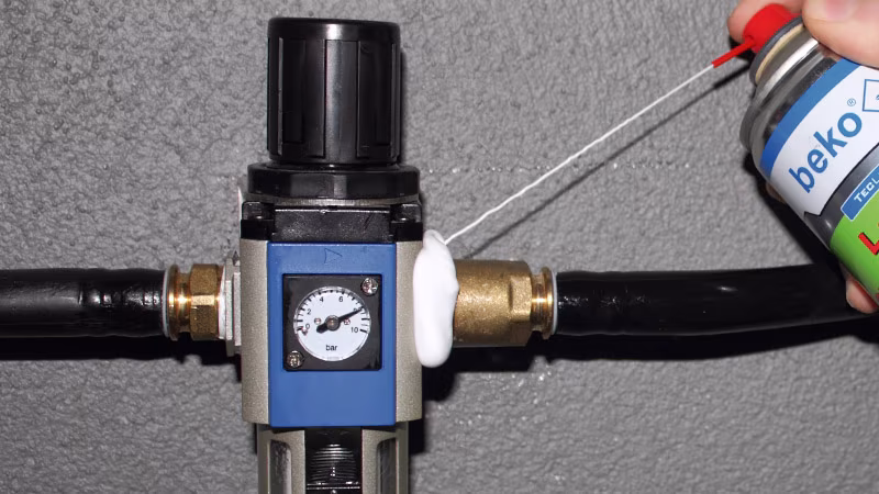 ToepassingsgebiedenGemakkelijkopsporen van lekken in leidingen en fittingen onder inwendige druk, testen van soldeer- en lasapparatuur, gas- en persluchtfittingen, remsystemen, ademhalingsapparatuur, brandblussers, luchtmatrassen, compressoren, duikapparatuur, rubberbanden, airconditioning- en koelsystemen en nog veel meer.