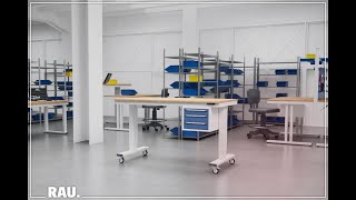 Werkblad met melamineharscoating, 22 mm dik.Boven- en onderkant met een lichtgrijze melamineharscoating. Melamineharscoating in overeenstemming met DIN68765. Spatwaterdicht en vuilafstotend, oppervlakte-eigenschappen volgens EN14322/EN14323: Slijtvastheidsklasse 3A, krasvastheid N>1,5, vlekbestendigheidsniveau ? 3 (bijv. aceton, alcohol, organische oplosmiddelen, white spirit), gevoeligheid voor barsten niveau ? 3, gedrag tegen sigarettengloed graad 3, gedrag tegen waterdamp graad 4, veiligheidscertificaat met betrekking tot migratiegedrag, kan daarom ook worden gebruikt in de voedingssector. Bekleding normaal ontvlambaar (B2) volgens DIN4102. Kern van spaanplaat in overeenstemming met EN309/EN312 (emissieklasse E1). Lichtgrijze, antistatische ABS-rand aan alle zijden. Systeem onderbouw, B740 x D750 x H700-1100 mm. 2 dubbele hefkolommen (80x50 mm, getest volgens EN 60335-1) inclusief besturingseenheid en aansluitkabel met stekker. Skids van profielstaalbuis (100x30x3 mm) inclusief stelvoeten. Compleet frame van stalen profielbuis (stalen buis 50x25x2,5 mm) bovenaan onder het werkblad. Bedieningselement met omhoog/omlaag knop. Elektrische verstelling met behulp van de 2 dubbele hefkolommen met geïntegreerde lineaire aandrijving. Geluidsarme, traploze en absoluut gesynchroniseerde verstelling van de werkhoogte, zelfs met asymmetrische lasten. Verstelbereik 38 mm/s (zonder last). Inschakelduur 10 % (6 minuten per uur of 2 minuten continubedrijf bij volle belasting). Energieverbruik in stand-by slechts 0,1 W. CE-verklaring van overeenstemming: Het product voldoet aan de essentiële eisen van de volgende harmonisatiewetgeving: a) Richtlijn 2006/42/EG van het Europees Parlement en de Raad van 17 mei 2006 betreffende machines en tot wijziging van Richtlijn 95/16/EG. b) Richtlijn 2014/30/EU van het Europees Parlement en de Raad van 26 februari 2014 betreffende de onderlinge aanpassing van de wetgevingen van de lidstaten inzake elektromagnetische compatibiliteit. // De volgende geharmoniseerde normen zijn toegepast: a) DIN EN ISO 1210:2011-03 Veiligheid van machines - Algemene ontwerpprincipes - Risicobeoordeling en risicobeperking. b) DIN EN 1570-1 Veiligheidseisen voor heftafels - Deel 1 (behalve hoofdstukken 5.5.5, 5.6.11 en 5.6.10).10). Opmerking: Het systeem kan optioneel onafhankelijk worden bediend via een accubox (accessoire), zodat er geen permanente aansluiting op een stroomvoorziening nodig is. Poedercoating Max. oppervlaktebelasting 300 kg Volledig gemonteerd geleverd Kwaliteitsgarantie 5 jaar Made in Germany
